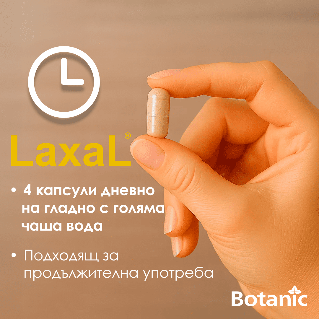 Това зависи от индивидуалния организъм. Продуктът има мек ефект и действа изцяло механично, затова е нужен няколкодневен прием. За разлика от агресивни лаксативи, LaxaL не води до лениви черва.