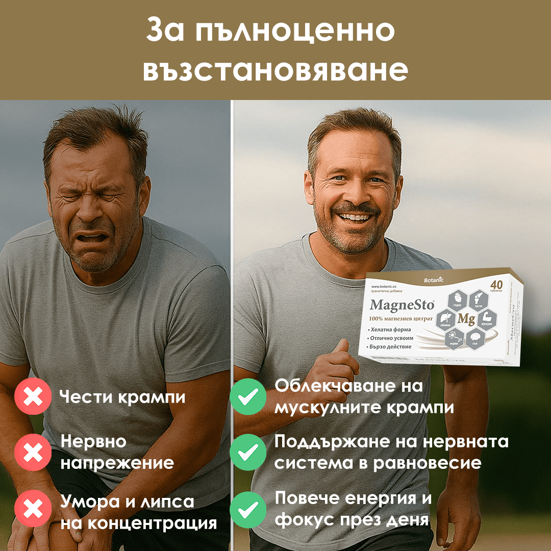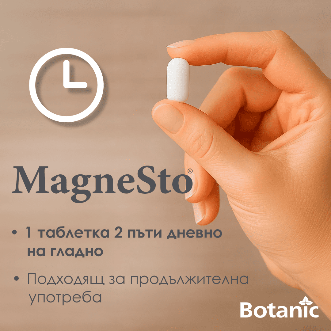 - Чиста формула – съдържанието на MagneSto е 100% чист магнезиев цитрат, към който не е добавян оксид или друга неорганична форма. Таблетката не е филмирана; не съдържа животински продукти, оцветители и консерванти.